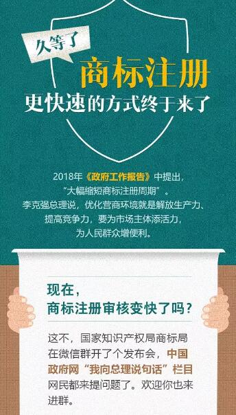 2018年《政府工作報告》中提出,“大幅縮短商標注冊周期”。李克強總理說(shuō),有話(huà)營(yíng)商環(huán)境就是解放生產(chǎn)力、提高競爭力,腰圍市場(chǎng)主體添活力,為人民群眾增便利。商標網(wǎng)打開(kāi)慢、商標審查周期長(cháng)、紙件郵寄折磨人……圖文詳解為您解憂(yōu)!