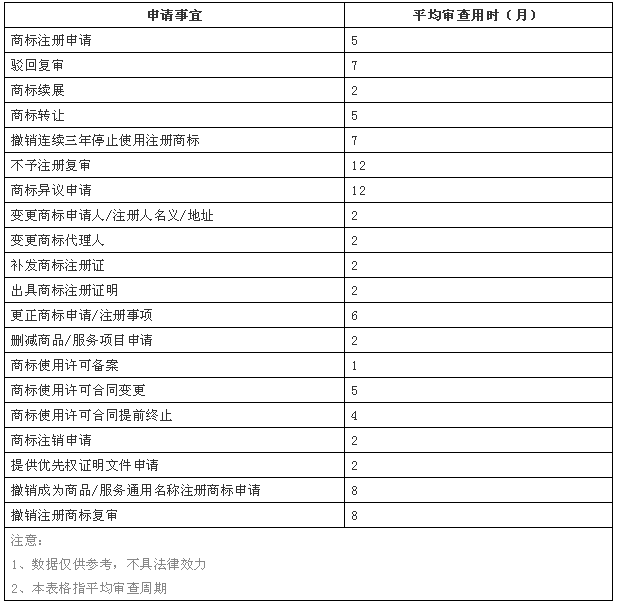 各種商標申請業(yè)務(wù)的時(shí)長(cháng)