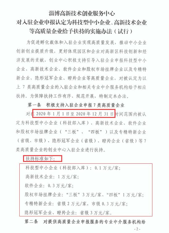 接淄博高新技術(shù)創(chuàng )業(yè)服務(wù)中心關(guān)于《對入駐企業(yè)申報認定為科技型中小企業(yè)、高新技術(shù)企業(yè)等高質(zhì)量企業(yè)給予扶持的實(shí)施辦法(試行)》通知。