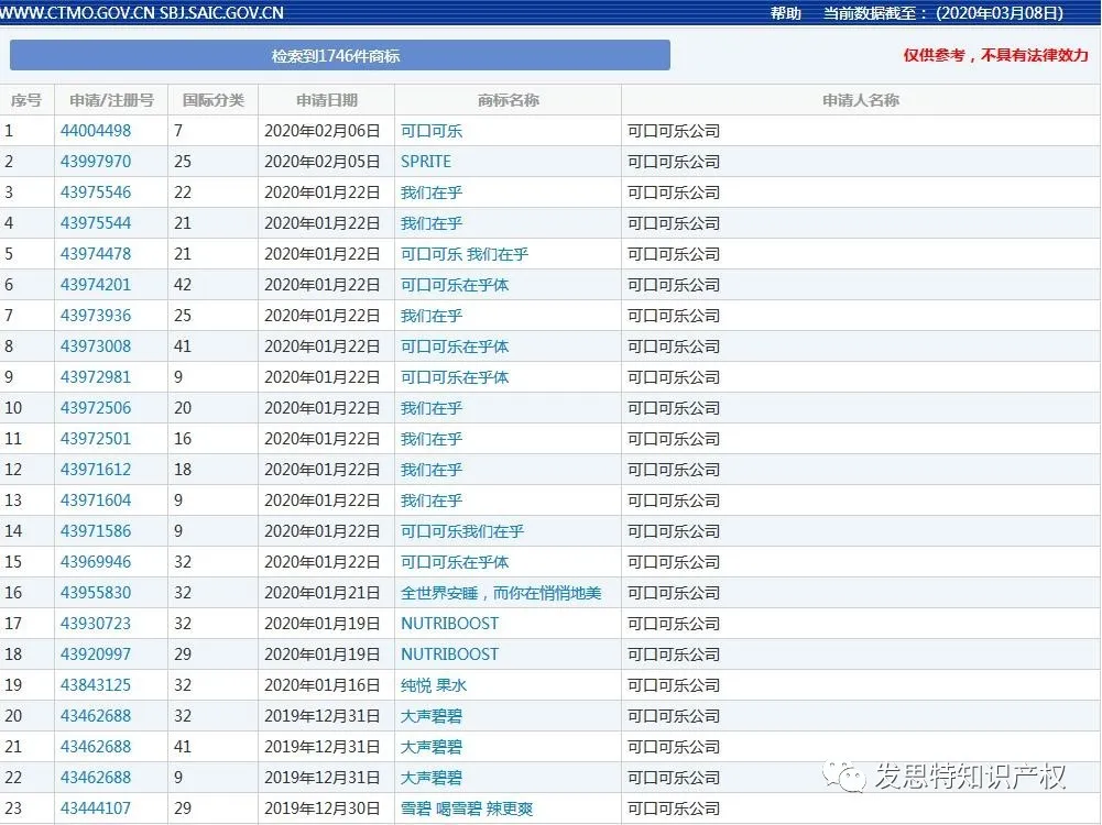 截至目前,可口可樂(lè )公司名下?lián)碛小翱煽诳蓸?lè )”、“雪碧”、“冰露”1700多件商標,基本完成了對整個(gè)品牌體系和下屬的多個(gè)產(chǎn)品線(xiàn)的完整保護,且這個(gè)數字仍在不斷增加。