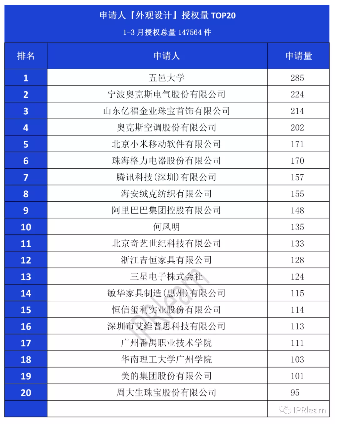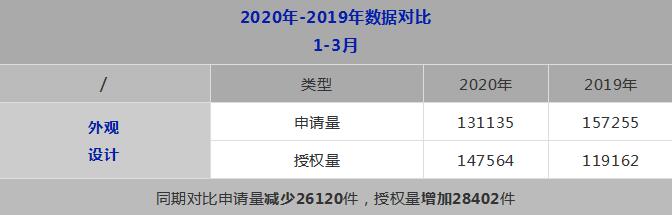 1-3 月,我國外觀(guān)設計專(zhuān)利申請 13.1 萬(wàn)件,外觀(guān)設計專(zhuān)利授權 14.8 萬(wàn)件。截至 2020 年 3 月底,外觀(guān)設計專(zhuān)利有效 量為 186.9 萬(wàn)件。