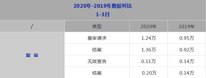 1-3 月,我局受理復審請求 1.24 萬(wàn)件,結案 1.36 萬(wàn)件。受理無(wú)效宣告請求 0.11 萬(wàn)件,結案 0.20 萬(wàn)件。